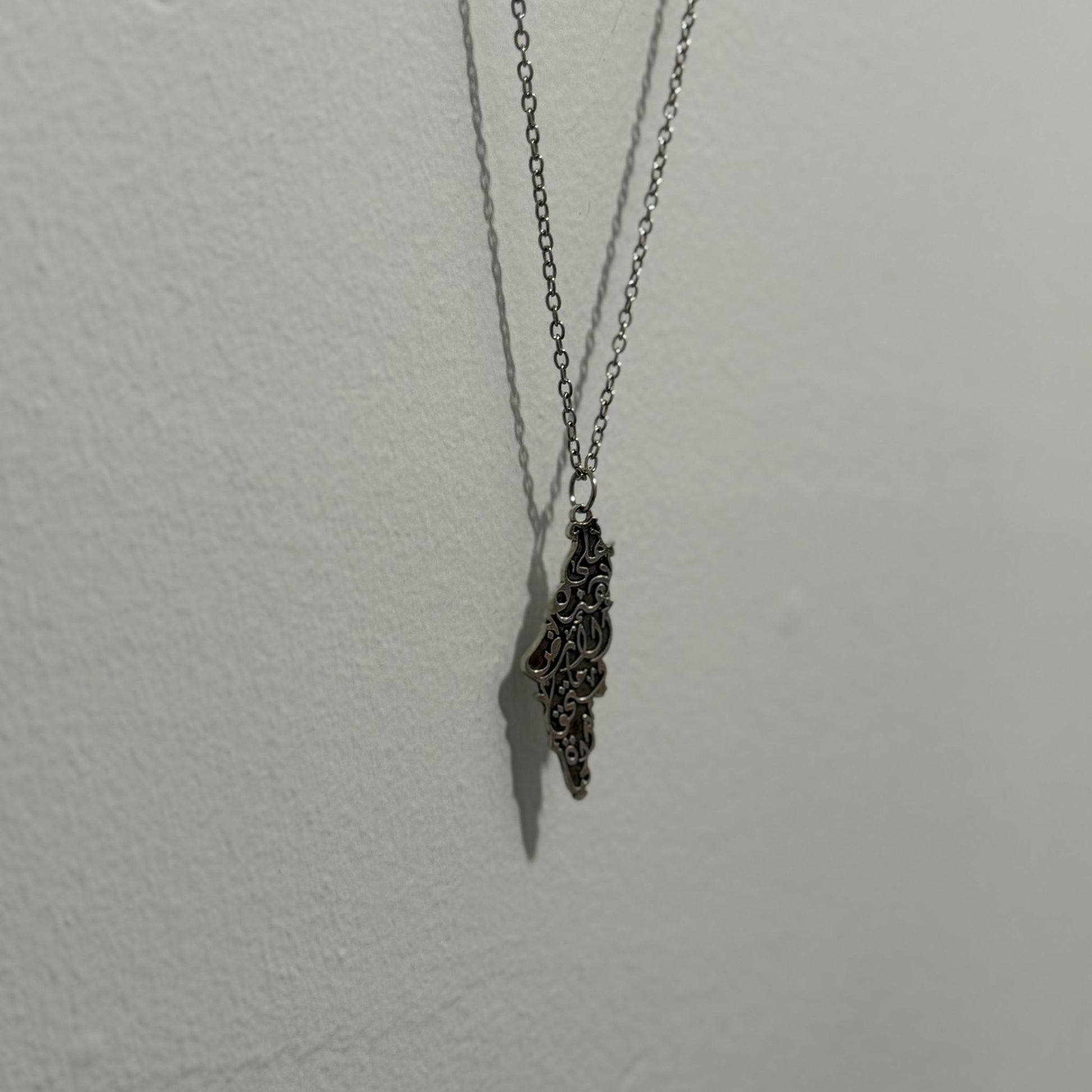 Arabic Calligraphy Palestine Map Necklace – Silver